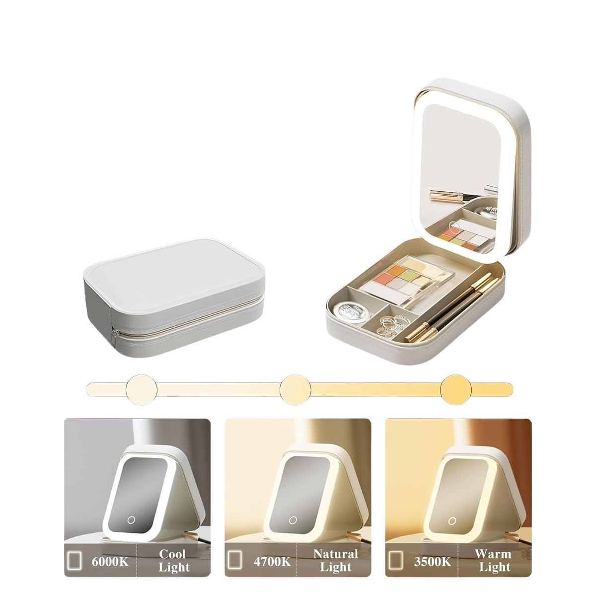 המראה היוקרתי של התיק עם תאורת לֶד מתכווננת משתלב עם כל סגנון ומוסיף טאץ׳ של יוקרה לכל שולחן איפור